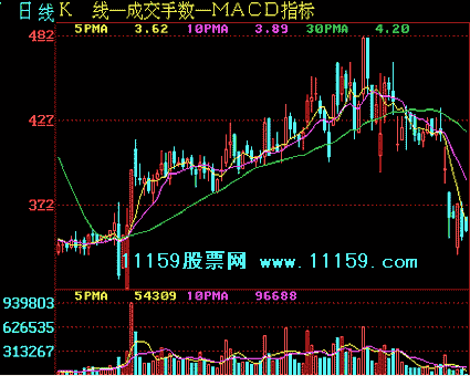 2、股价在暴跌之后反弹,无力突破10日移动平均线的压力,说明股价将继续下跌,此时为卖出时机。