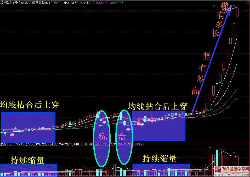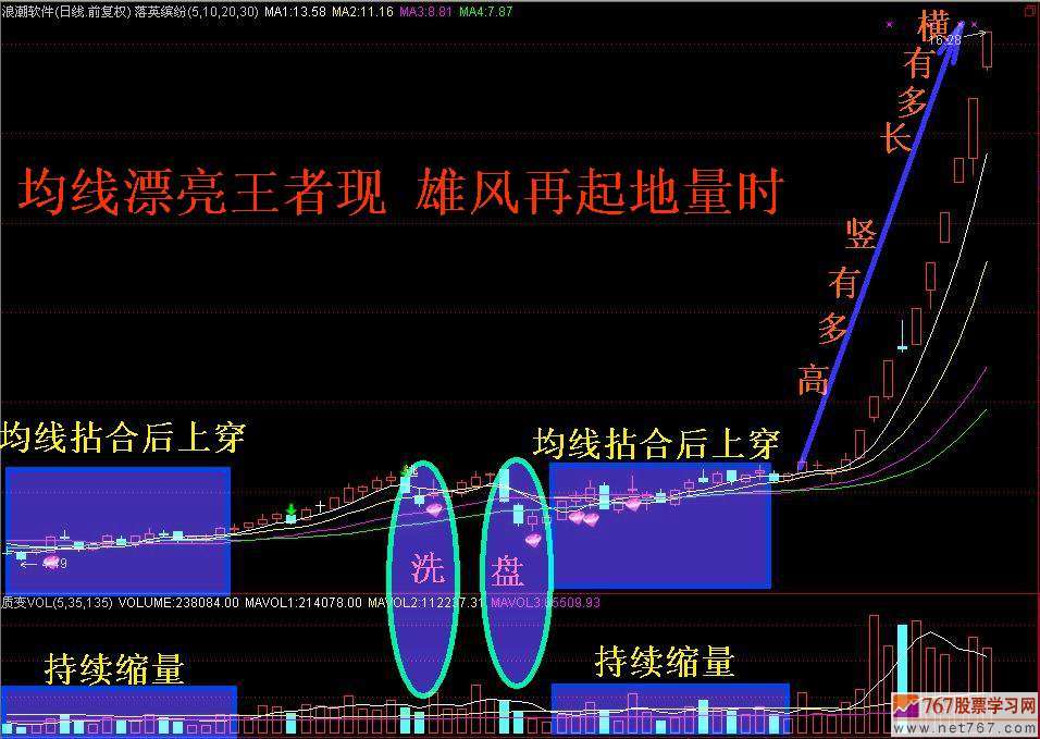 在技术分析中,市场成本原理非常重要,它是趋势產生的基础,市场中的趋势之所以能够维持,是因为市场成本的推动力,例如:在上升趋势裡,市场的成本是逐渐上升的,下降趋势裡,市场的成本是逐渐下移的。成本的变化导致了趋势的沿续。均线代表了一定时期内的市场平均成本变化,我非常看重均线,本人在多年的实战中总结出一套完整的市场成本变化规律----均线理论。他用於判断大趋势是很有效果的。内容包扩:01、均线回补。02、均线收敛。03、均线修復。04、均线发散。05、均线平行。06、均线脉衝。07、均线背离。08、均线助推。09、均线扭转。10、均线服从。11、均线穿越。12、均线角度。今日,我首先给大家重点介绍一下均线回补和均线收敛,希望在和大家交流中得到完善和补充。