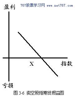 比较卖空股指期货的损益图(见图3.6),同样可以发现,期货交易盈利无限,亏损无限,而投资认沽权证的亏损有限。