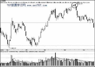 2. 指数最高点位置,形成了空方炮的K线形态,由于第一根阴线的实体较小,很难引起投资者注意,但越是不容易被投资者注意的走势,反而越容易产生方向上的变化;