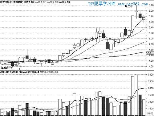 图7-6是2006年12月6000797浙大网新的走势图,其股价在突