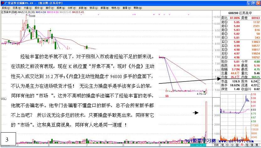 这些高度控盘老庄股主力操盘手法是单一甚至说是乏味的,在这些股票中很难吸引散户的参与。大部分老庄股每天盘中的成交量几乎 80%都是有庄家自弹自唱对倒出来的。对倒的目的很多时候是维持该股每天有一定的成交,不给市场产生应该股已经彻底“死亡”的看法。有时操作手盘中大量的对倒也是希望吸引普通投资者参与做点差价。其次的大量对倒目的就是为了吸引普通投资者的注意和参与诱多出货。今天600200江苏吴中盘中巨量的对倒就属于后者。