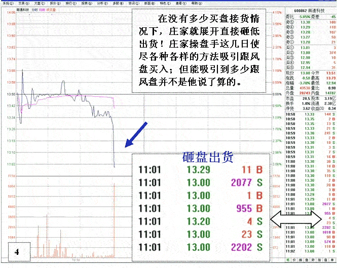 关注研究动态盘口的投资者中,花大量精力和时间跟踪研究者甚少。以至其一般只掌握一些较为简单的盘口知识,分析过程中多时也只是一知半解。就拿个股卖盘出现大卖单这种卖单压顶的盘口说事。首先卖盘出现大卖单压顶这种盘口时,就可分两两大类;庄家或者一般机构刻意操纵股价行为;市场大量投资者大量卖盘在同一价格挂出累积自然形成的卖压。单区分二者属于那一种性质就已经是较难的事情了。属于庄家刻意操纵具有那些特征?属于由市场大量卖盘同一价格挂出自然形成的卖压又有什么特征?所提出的这些问题是分析盘口必须掌握的技巧。 个股交易过程中卖盘出现大卖单压顶现象,按照以前大众的认识这是股价上升遇到大抛压的体现。多前年不少庄家操盘时利用这种大众思维进行进行反向操作。在拉升股价之前故意在卖盘挂出较大的卖单,欺骗部分不明真相投资者卖出,洗盘完成后庄家马上展开快速拉升。这种行为持续了相当一段时间后,被一些市场经验丰富个人高手所识破。于是在报纸上,电视财经节目中常有分析师或民间高手,解密描述庄家利用大卖单压顶洗盘这种操作手法。大量暴光后,逐渐庄家利用大卖单压顶洗盘这种手法被技术派投资者所了解。庄家利用大卖单压顶洗盘这种操纵手法操作洗盘随之慢慢失效。当一种方法暴光众人皆知后,此方法逐渐失效是理所当然的。但此方法不会消失而再次被庄家反方向利用。现在A股市场上个股交易过程中卖盘出现几万手以上大卖单压顶现象,90%都是庄家压单诱多出货的操作。这再也不是几年前的压单洗盘了。部分所谓的高手或投资者一条路走到黑,并没有意识到市场不断在变化,庄家操纵手法也跟着变化。看盘时总以之前固有认识去分析研判,以至研判常遇挫折或者一错再错。以至产生盘口分析无用论,或者盘口不可测的错乱思维。也有部分根本不懂盘口的投资者,因为他不懂而看不懂,所以觉得盘口分析这门研究方法无用!庄家操盘千百万化,但无论怎么变化都是利用投资者的大众思维为基点,利用大众的盲点进行欺骗性操纵。再厉害的庄家操盘手操作也会留下可辨别和破解的痕迹。下面通过分析个案剖析庄家操盘手操作的厉害和盘口破绽展示盘口分析的魅力