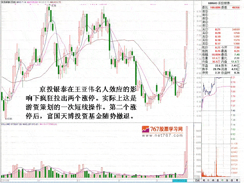 涨停板是最能吸引投资者注意的特殊行为,是短线客最喜欢参与的目标。历史原因,个股出现涨停时,涨停价格封单越大,越代表拉升主力的实力越强,后市上升空间越大。这是历史赋予大众的惯胸思维。个别庄家操盘手则根据这点,投其所好布置陷阱让投资者去钻。 巨单封涨停诱多在市场上不是常见到但是是绝对经典的一种诱多手法。主力利用散户认为涨停板的个股封单越大代表参加排队等候买入的资金越多,或者主力的实力越强,后面还有巨大升幅的心理而进行的一种诱多。 巨单封涨停诱分析起来比较复杂,分析时盘口的交易细节也甚为重要,下面以 [600322] 天房发展近日的表现剖析 庄家这一做盘行为。