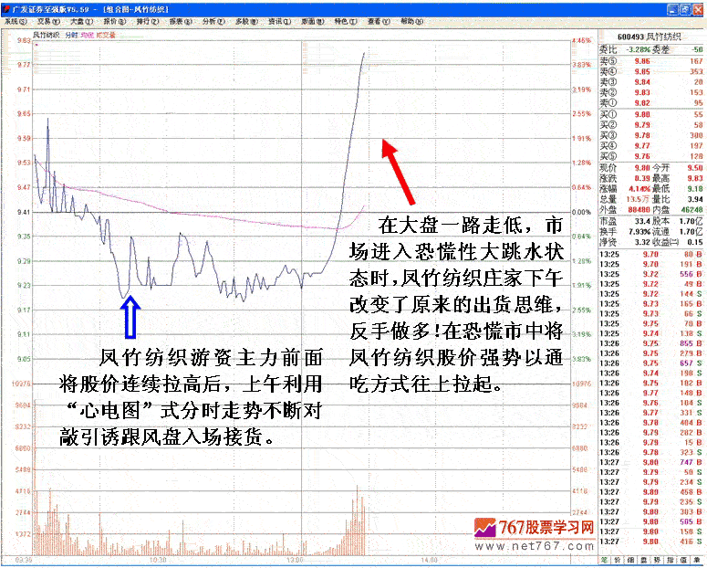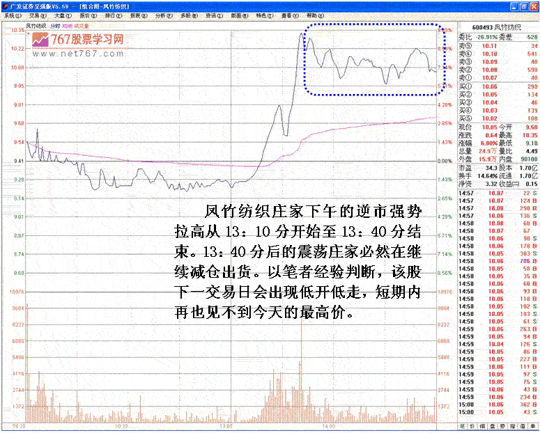 ◇600493 凤竹纺织,今日游资主力早盘打压股价出货,下午却反手做多连续拉高。操作手法由打压出货到反手做多在同一交易日内出现。介绍介绍庄家灵活操盘在盘口上的体现。