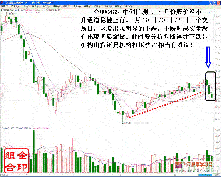 个股出现明显的打压出货盘口,如属庄家刻意打压股价进行洗盘行为,那么该股经历短暂洗盘下跌后,短期内股价立即就会出现快速放量拉起并一路上升。”根据下跌后短期内目标股票后续走势去区分,个股前期的下跌是庄家打压洗盘还是减仓出货,这是一种分析思路。