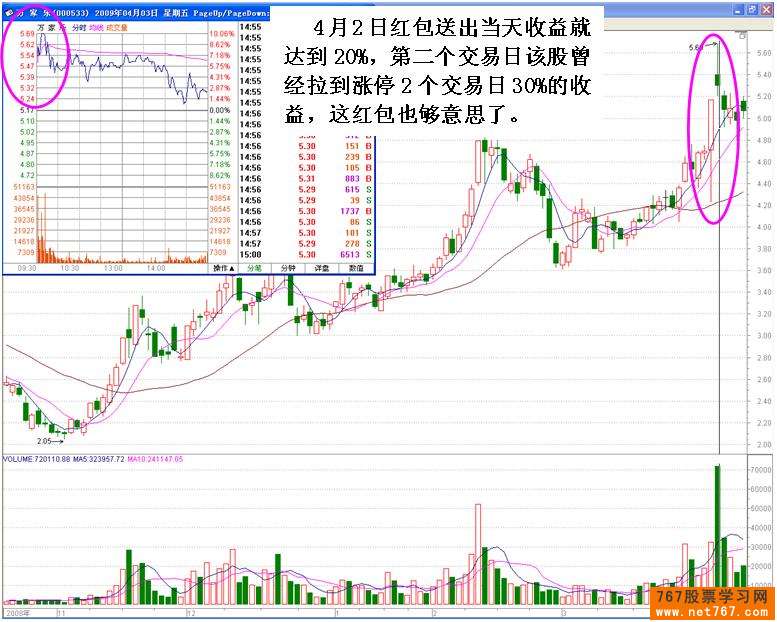 股市是个弱肉强食市场!证券交易电子化后投资者没有了面对面交易,交易过程中有法律的监督管理。所以证券市场已不存在强者舞刀弄斧强制威逼弱者买卖,也限制不了任何人的自由交易。没有了直接的欺行霸市之后,弱肉强食的过程换而然之的就是日日上演的欺诈蒙骗,引诱和陷阱!股票交易中的欺骗引诱和陷阱可以出现在大机构主力运作个股的任何阶段, 手法和方式多种多样。进场时庄家想尽办法让投资者交出手中的筹码;拉升前会把部分人先赶出去,出货时则千方百计引诱资金买入,为达目的不择手段。做庄也可通过制造散报虚假消息,通过操纵股价刻意制造图表欺骗广大投资者,这些都是家常便饭!现时大市正处于阶段性下跌之中,各大机构普遍忙于减仓出货。为达到顺利出货相,当多庄家在交易盘中巧妙布置各种各样的陷阱引诱投不明真相的投资者入场接盘。000938 紫光股份近日出现的,庄家通过操纵股价制造图表欺骗广大投资者跟风的操盘技巧甚为一绝。下面就以紫光股份庄家近日所展开的操盘行为介绍该庄家操盘手在交易盘中使用的经典诱多招数。先说说A股拆分上市概念之先例东北高速在重组过程中拆分为601188 龙江交通 和 601518 吉林高速两股,并于2010年3月19日在上海证券交易所正式上市交易。此例成为国内A股市场第一个由一家上市公司拆分为两家上市公司后再恢复上市之先例。拆分概念因此例横空出世!A股历来就有逢新必炒的习惯!龙江交通和吉林高速拆分后3月19日上市交易,稍后即出现二股双双被机构连拉出三个涨停走势。二股的暴涨使得拆分概念席此深入人心! 4月中旬以同方股份,紫光股份为首拆分概念股异军突起,其中紫光股份连拉两个涨停引爆拆分概念股全线一夜之间飘红。而实际上从拆分概念股的后面表现可以看到,相当部分主力利用该概念连续拉上升两到三日后立即转手出货。紫光股份的表现更甚是明显。下面通过紫光股份近日的股价表现剖析其主力运作该股拉高出货的操作思路。以及庄家操盘手通过巧妙布置陷阱引诱投资者入场接盘的操纵行为。