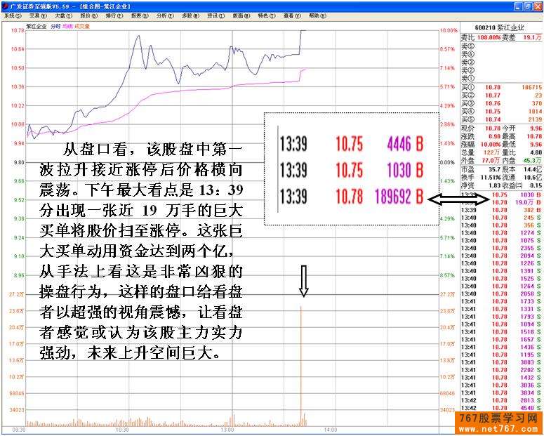 每个股票都有大量机构,大户持有。即使某个庄家控盘该股50%流通盘也不例外。作为一个股票的主庄,可以通过资金优势买卖去影响该股价格升跌。但他没有能力控制其他机构和大户的进出行为。一般机构和大户进出是根据各自对该股未来走势的判断而操作。主庄在实施操纵影响股价走势时,一般机构和大户也根据自己的判断选择持股,或买进,卖出。二者之间操作都是独立的,当二者共同出现在交易盘口中,发生反方向交易时,这就产生博弈行为。 主庄花钱出力拉升股价时,一般机构或大户趁机大量卖出,这无疑损害主庄的利益。当发生如此情况时,主庄一般也是相当无奈的。他们能做的要么是继续往上拉抬股价;要么通过打压股价来清洗盘。庄家积极花钱出力拉升股价时,或拉高股价后,场内其它机构和大户趁机抛出是常见之事。出现这样的盘面是观察二者实力和做空,做多态度的好时机。下面通过〔600528〕中铁二局 10月22日的动态盘口了介绍主庄与一般机构博弈行为。