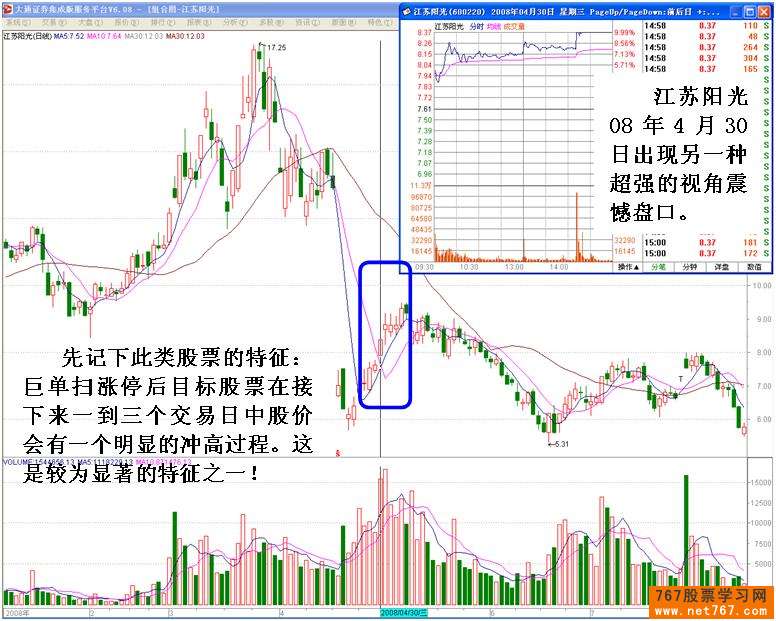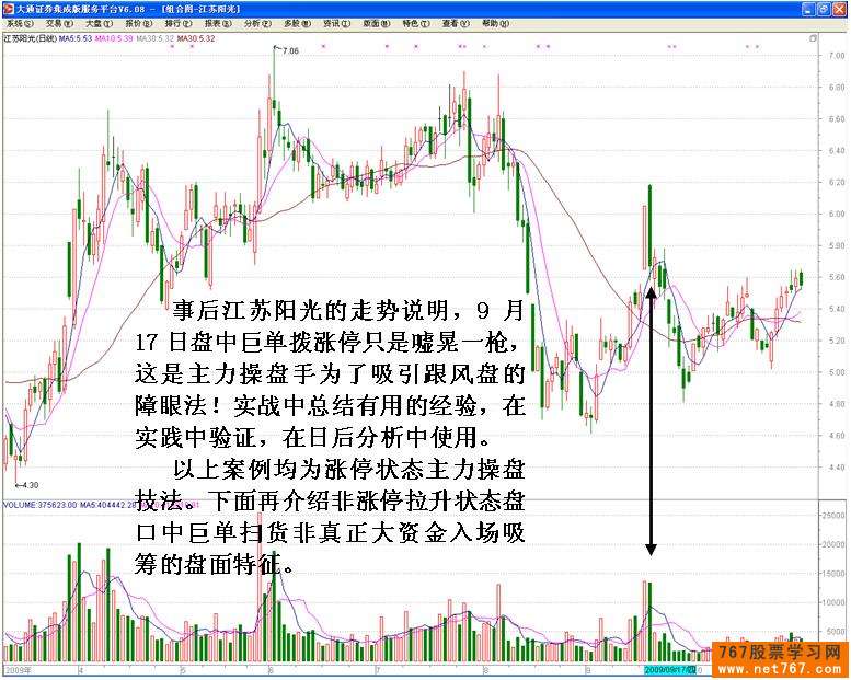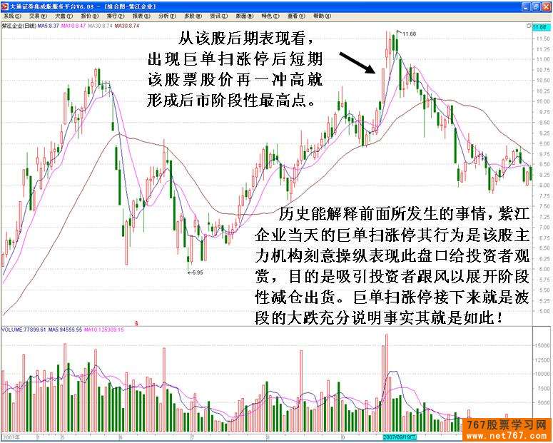 下面个股经典案例介绍“巨单扫货”在个股波段高位出现属于诱多骗局主力操纵行为作剖析。在理论上为此环境下出现的此类个股分析判断思路作一定的技术分析指引。