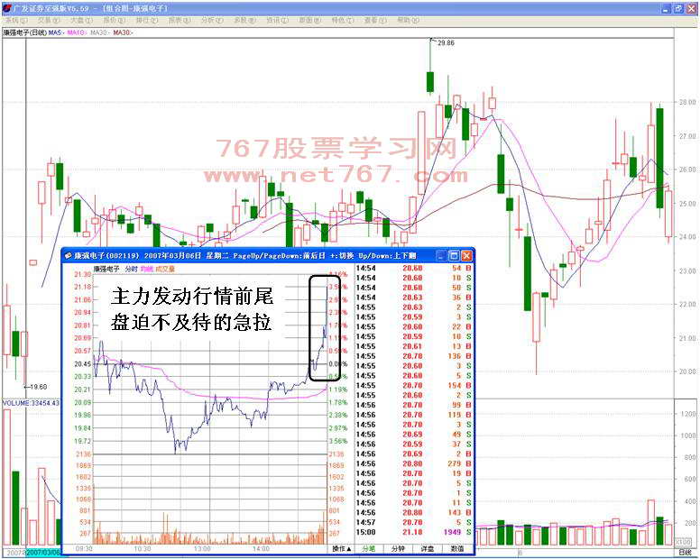 一. 目标股票主力在最后拉升中刻意急拉尾盘制造漂亮大阳线