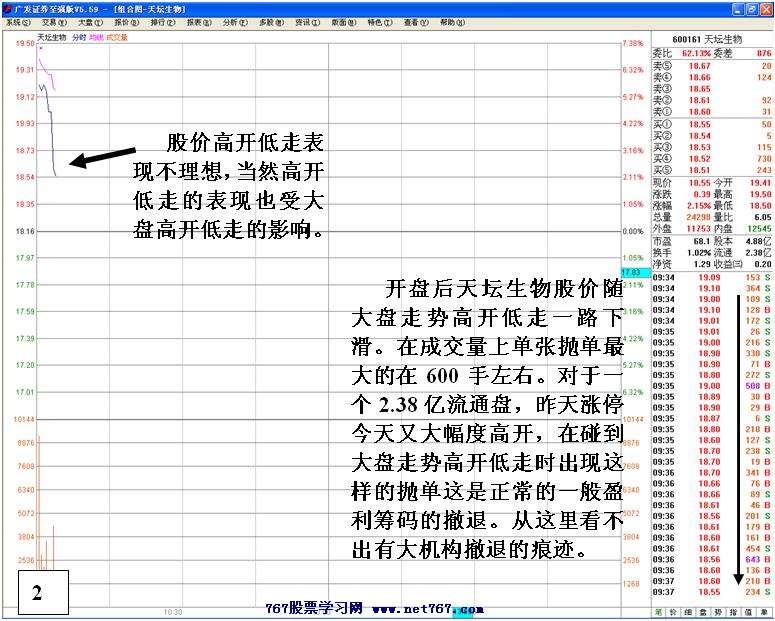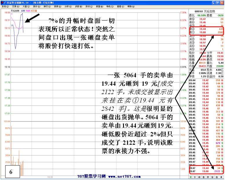 通过盘口观察研究实力机构盘中的活动情况,揣摩主力机构操盘意图,态度从而分析该股未来短期的方向发展和强弱表现是一种行之有效的好方法。 下面以7月30日盘中主力机构活动明显的个股作为案例介绍如何从个股买盘出现异常大的托单行为判断主力机构操作态度。 7月29日两市股指出现暴跌,个股纷纷出现急跳水。周四早盘大盘反弹冲高回落时大部分个股仍然在昨天恐慌性下跌情绪笼罩下出现继续跳水走势。