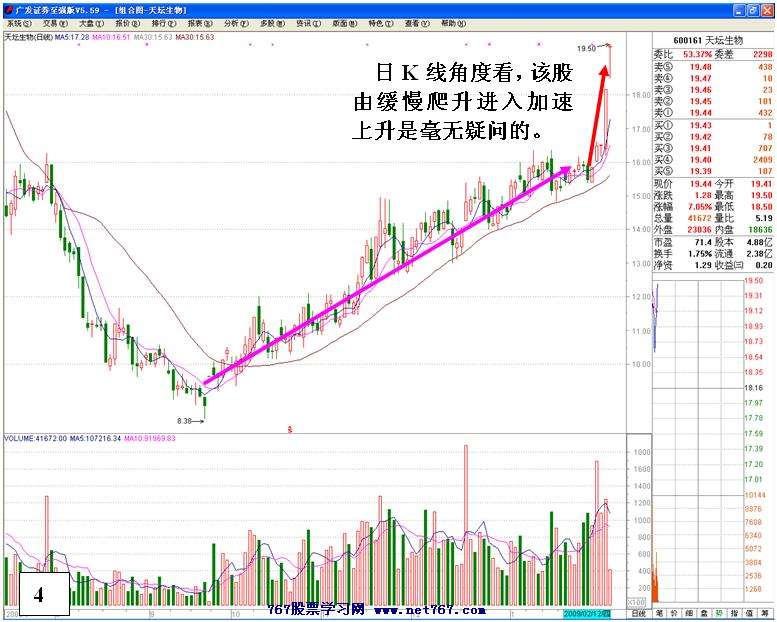 所谓尾盘逆市拉升,通俗的说就是股市在临近收市时段,股指出现较大幅度的调整而个股出现与大盘方向相反的大幅拉升。个股出现这种尾盘逆市拉升行为一般为主力机构操纵行为。其操作目的是分为多种。一. 尾盘逆市拉升属机构收集筹码。在大市和个股都处于低位时部分主力机构入场吸筹会用尾盘逆市拉升这一招去收集筹码。在大盘当天调整特别是尾市出现跳水时,持股投资者一般表现出较为恐慌情绪,此时最容易产生获利了结或者止损离场观望情绪。主力在尾市逆市拉高股价,给产生获利了结或止损离场者一个高价退出的机会这样很容易收集到筹码。这一收集筹码招数往往会在主力入庄整个收集筹码过程中断续出现多次。尾盘逆市拉升属机构收集筹码个股尾盘拉升幅度一般情况下不会超过5%涨幅。因为此时的机构不希望暴露自己入庄的行踪。当然在遇到上市公司马上就要公布利好消息等已不候主力慢慢收集筹码的情况,主力有时会进行一口气拉出巨大涨幅甚至涨停通吃的方式收集筹码。笔者曾经操作过的案例(600546)中油化建在08年11月5日和7日的尾盘暴拉就是如此。 二 . 尾盘逆市拉升属机构主力表现实力。 这是标准的“出风头”行为! 机构是什么?通俗的说机构是一个团队。团队中成员工作各有各自的分工,在做庄行为上真正起决策作用的只有一两个人。行内把起决策作用的主脑称为操盘手。(负责买卖下单的小妹只能称为下单员,不是真正意义上的操作盘手。)操盘手是一个人,市场中存在各种各样的操盘手,其性格和操盘风格各不同样。小部分操盘手喜欢在操作时做出各种各样夸张的盘口出风头并不奇怪。 尾盘逆市拉升这种爱出风头有时是主力显示自我实力的表现。部分主力机构在大盘大跌当天尾盘逆市拉升股价则属护盘行为,在护盘时表现的异常突出,超强势的尾盘逆市拉升其他目的是想告诉目标股票持有者,该股主力很有实力很强大。09年2月18日大盘大跌当天尾盘逆市拉起600712 南宁百货有此味道!三. 尾盘逆市拉升属机构吸引投资者目光,引诱跟风盘跟进以便减仓行为。这是游资,短庄,实力一般主力较常做的事情。在大盘当天大跌或者尾盘大跳水时,某个股票出现逆市强势拉升的确是很耀眼的。道理很简单,大盘当天大跌或者尾盘大跳水时,个股票出现逆市上涨表现超强的拉高往往会在5分钟涨速榜中出现并停留较长时间。现在的投资者看盘免不了看深圳市场或上海市场中83 和81 综合排名榜。喜欢短线操作者更是不断盯梢行情软件中83 和81涨速榜。对于尾盘逆市暴拉的个股总能吸引更多投资者的目光,也能有效的吸引一些短线跟风盘跟进,主力利用这招减仓派发较为常见。主力机构如此操作不仅仅是在逆市拉升当天减仓更是为后面短期内的减仓埋下伏笔。 下面来看看市场中的实践个案。 [NextPage]