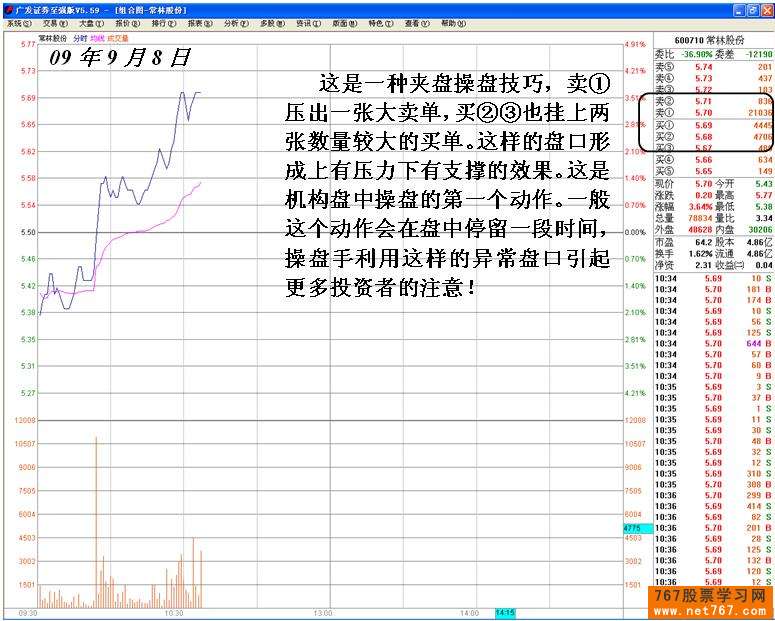 操盘手减仓艰难的折腾过程中使尽种种诱多诱骗场外资金入市,出货盘口中操盘手所利用到的具体操纵手法下面通过常林股份这几日的动态盘口一一介绍!