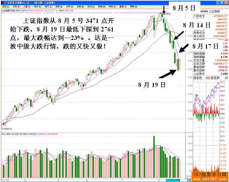4.下跌趋势只中大盘的下跌严重影响和引领个股的下行。经过二次重选后,如果大盘继续下探,那么在股指再下一个台阶后则进行第三次重新翻重选把出现补跌走弱的个股排除。在中级调整或者下跌势中,大跌反复震荡下跌时则需要多次在不同的下跌点位反复多次进行重选排除动作。实践中有可能在大盘中长期大跌刚刚下跌时海选出来的个股数量可能多到上百个,而在后面的反复重选排除中最后一般只剩余十几个能坚持逆市走强,抗跌,和微跌。到最后大盘稳定或者出现反攻时,这些位数不多仍然保持良好走势抗跌和微跌的个股就是千锤百炼出来的机会。笔者总结,在这些千锤百炼出来的品种中有近50%的个股会在后市波段上涨中上升幅度达到或超过50%涨幅。另外一半多少会有较好的表现。