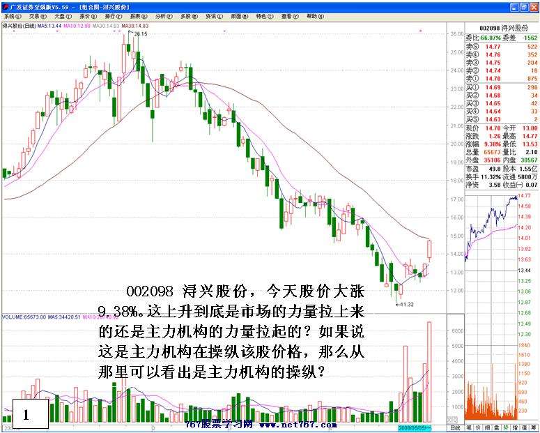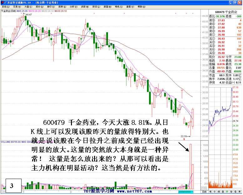 所谓尾盘逆市拉升,通俗的说就是股市在临近收市时段,股指出现较大幅度的调整而个股出现与大盘方向相反的大幅拉升。个股出现这种尾盘逆市拉升行为一般为主力机构操纵行为。其操作目的是分为多种。一. 尾盘逆市拉升属机构收集筹码。在大市和个股都处于低位时部分主力机构入场吸筹会用尾盘逆市拉升这一招去收集筹码。在大盘当天调整特别是尾市出现跳水时,持股投资者一般表现出较为恐慌情绪,此时最容易产生获利了结或者止损离场观望情绪。主力在尾市逆市拉高股价,给产生获利了结或止损离场者一个高价退出的机会这样很容易收集到筹码。这一收集筹码招数往往会在主力入庄整个收集筹码过程中断续出现多次。尾盘逆市拉升属机构收集筹码个股尾盘拉升幅度一般情况下不会超过5%涨幅。因为此时的机构不希望暴露自己入庄的行踪。当然在遇到上市公司马上就要公布利好消息等已不候主力慢慢收集筹码的情况,主力有时会进行一口气拉出巨大涨幅甚至涨停通吃的方式收集筹码。笔者曾经操作过的案例(600546)中油化建在08年11月5日和7日的尾盘暴拉就是如此。 二 . 尾盘逆市拉升属机构主力表现实力。 这是标准的“出风头”行为! 机构是什么?通俗的说机构是一个团队。团队中成员工作各有各自的分工,在做庄行为上真正起决策作用的只有一两个人。行内把起决策作用的主脑称为操盘手。(负责买卖下单的小妹只能称为下单员,不是真正意义上的操作盘手。)操盘手是一个人,市场中存在各种各样的操盘手,其性格和操盘风格各不同样。小部分操盘手喜欢在操作时做出各种各样夸张的盘口出风头并不奇怪。 尾盘逆市拉升这种爱出风头有时是主力显示自我实力的表现。部分主力机构在大盘大跌当天尾盘逆市拉升股价则属护盘行为,在护盘时表现的异常突出,超强势的尾盘逆市拉升其他目的是想告诉目标股票持有者,该股主力很有实力很强大。09年2月18日大盘大跌当天尾盘逆市拉起600712 南宁百货有此味道!三. 尾盘逆市拉升属机构吸引投资者目光,引诱跟风盘跟进以便减仓行为。这是游资,短庄,实力一般主力较常做的事情。在大盘当天大跌或者尾盘大跳水时,某个股票出现逆市强势拉升的确是很耀眼的。道理很简单,大盘当天大跌或者尾盘大跳水时,个股票出现逆市上涨表现超强的拉高往往会在5分钟涨速榜中出现并停留较长时间。现在的投资者看盘免不了看深圳市场或上海市场中83 和81 综合排名榜。喜欢短线操作者更是不断盯梢行情软件中83 和81涨速榜。对于尾盘逆市暴拉的个股总能吸引更多投资者的目光,也能有效的吸引一些短线跟风盘跟进,主力利用这招减仓派发较为常见。主力机构如此操作不仅仅是在逆市拉升当天减仓更是为后面短期内的减仓埋下伏笔。 下面来看看市场中的实践个案。 [NextPage]