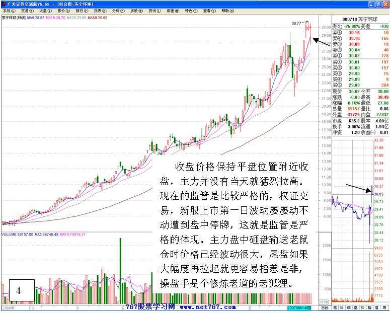 捕捉到短线飙升的个股的投资者向往的事情!捕捉短线飙升的个股的方法是多种多样的,有人用指标去判断捕捉;有人均线去判断捕捉;有人形态去判断捕捉;有人量能去判断捕捉;也有人利用软件交易席位去判断捕捉。如邓老所讲:不管猫白黑猫,抓到老鼠就是好猫! 不管什么方法,捕捉短线飙升的个股就是好方法! 笔者用的是主力行为学捕捉短线飙升的个股。简单的说就是跟踪观察研究个股中的主力机构。当主力机构表现出强的拉升欲望和行动时就及时跟进。 笔者认为,利用主力行为学捕捉短线飙升的个股是目前跟庄的最有效方法。当然也是最难的方法。部分个股主力机构在决定拉升之前都会出来做好事前的准备工作。这些工作内容有时会在目标股票的盘口上,分时走势上,成交量能上表现出 “异常” 的交易状态。这种“异常” 的交易状况是我们跟踪研究和判断主力机构后面行为动作目的的关键。至于这种“异常”没有统一的标准,大都靠多年累积的经验判断。 下面以实践案例介绍主力机构决定拉升之前,操盘手活动时在个股盘口上,分时走势上,成交量上“异常” 的表现!780) this.width=780" border=0>