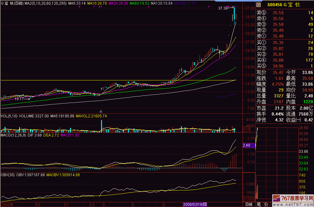 (图259-1)的600456 G宝钛是去年进入广通沙盘的“沙盘股”,一直在涨。前几天是四个涨停板,其中两个是“空心涨停板”,昨天还创了上市以来的新高,