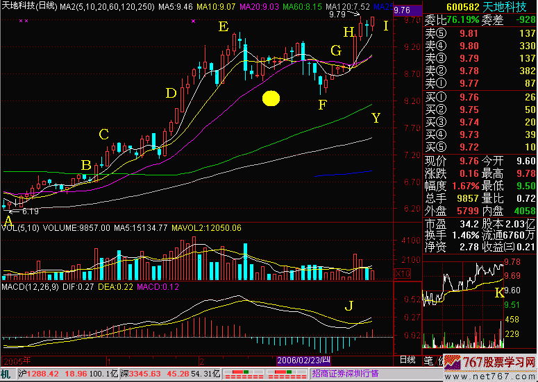 8.K是分时走势图。要求“吹着喇叭往前跑”,开口越大越好。