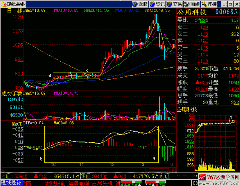 000685公用科技这个股票走得有些怪异。我们来看它几个怪异的地方,见(图216-1)所示: