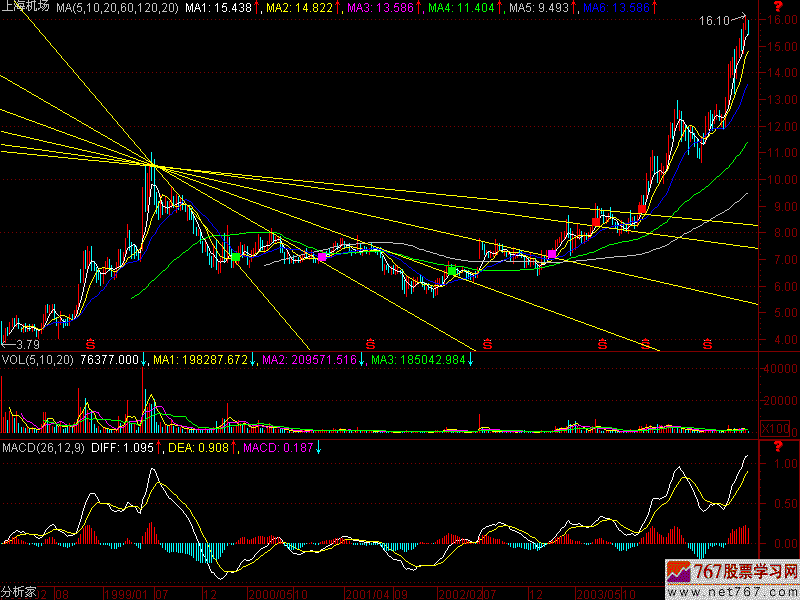 第200节:多方炮开炮一汽轿车走出了【多方炮】形态,这可是一个真正的【多方炮】,因为它是卡在这根【高点连线】上。见(图200-1)所示。【多方炮】过线以后