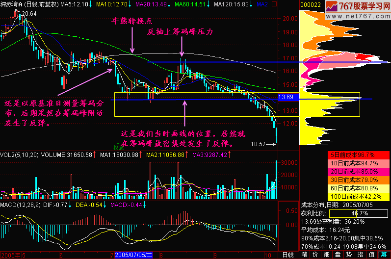 下图的例子是通过下筹码峰来分析可能反弹的区间。见(图133-1)、(图133-2)所示。