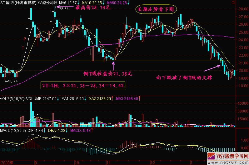 该公式中的“T线”有别于底部的“T线”,准确说应该叫“倒T线”才对,底部的“T线”是压力线,而顶部的“倒T线”是支撑线。