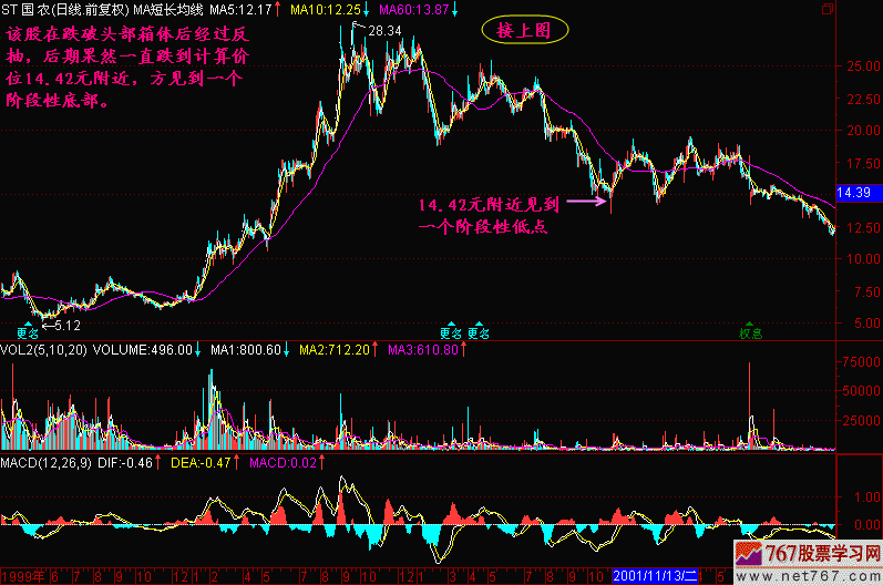 第135节:股价反弹高度分析当一只庄股构筑头部后,股价下跌,如果在前期它形成头部的过程中,成交量不大的话,那么庄家会利用指数条件制造反弹,产生反弹的主要原