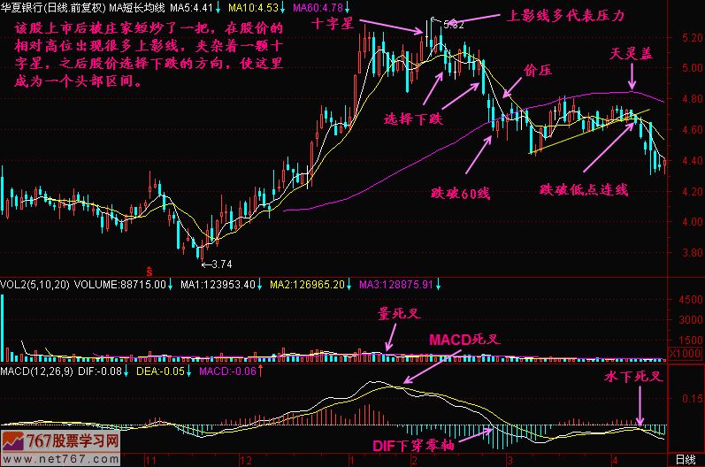 第122节:头部特征一庄家在头部出货区间,因为其持仓量较大,无法在短期内全部清仓,所以往往采取拖延战术,能拖则拖,不能拖只有向下压低一个价位继续出货,由此