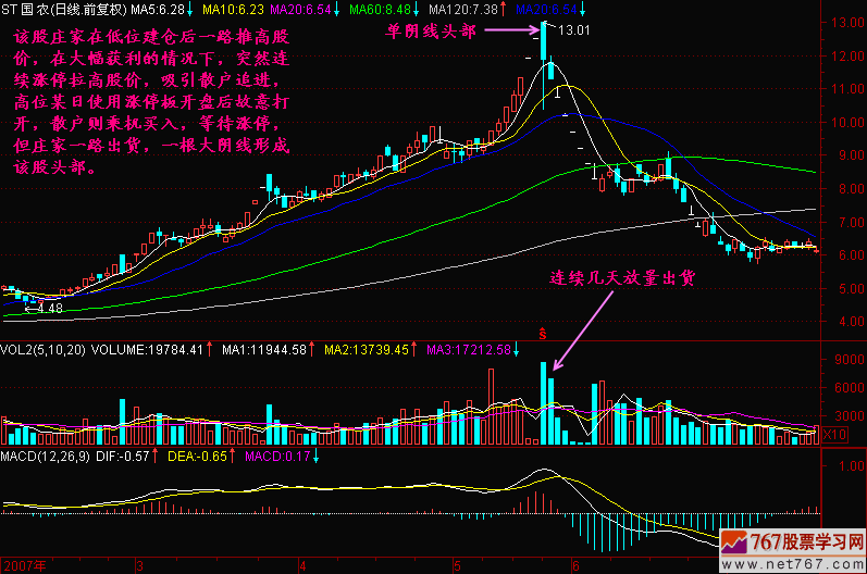 阴线表明在一天的成交过程中,空方力量较强,将股价从高位一路打压到低位,多方明显处于弱势。如此说来,阴线很容易形成头部?