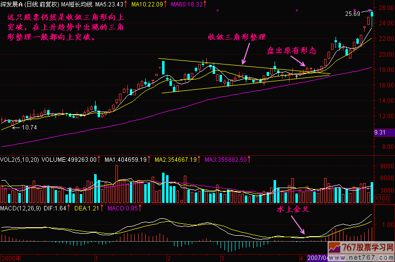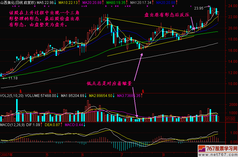 除了三角形整理以外,还有诸如:“箱体整理”、“旗形整理”、“偰形整理”、“底部三角形”、“上升三角形”等等形态……