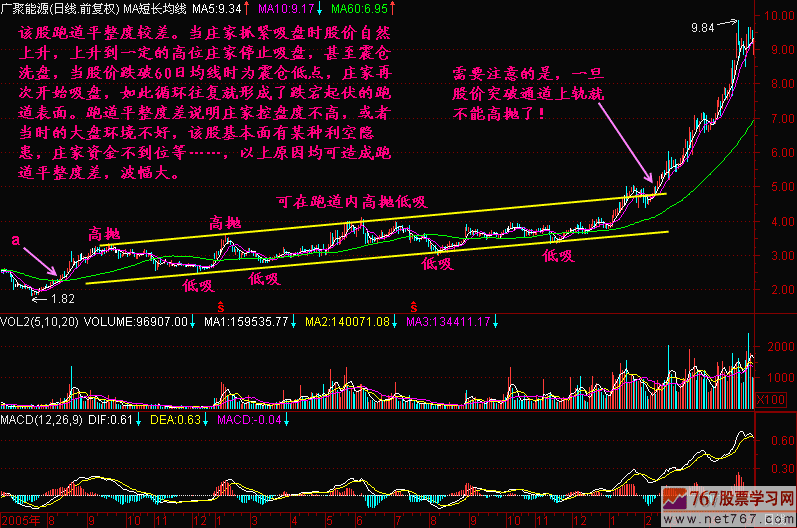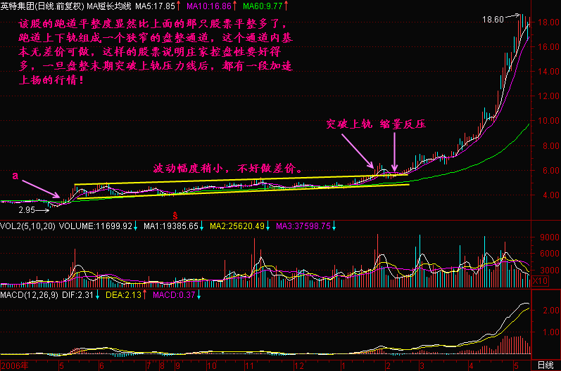 跑道表面平整度较差,有较大的起伏,整个跑道呈现一个上扬通道,可在通道内高抛低吸做差价,请看下面的案例(图72-1)